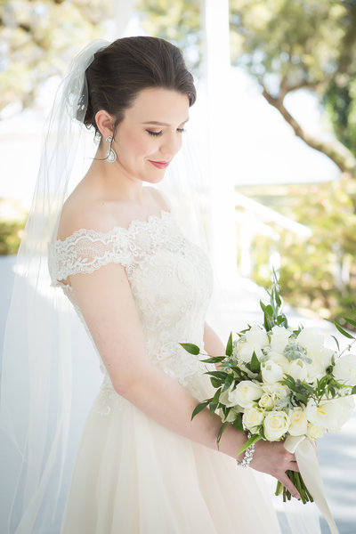 We love when a Bride chooses a location for their session that complements their wedding. For example if you’re planning a chic, elegant wedding, it may be fitting to take your Bridal portraits among the classic architecture in downtown Biloxi, while a local park or flower-filled fields may be more fitting for planning a more rustic affair.